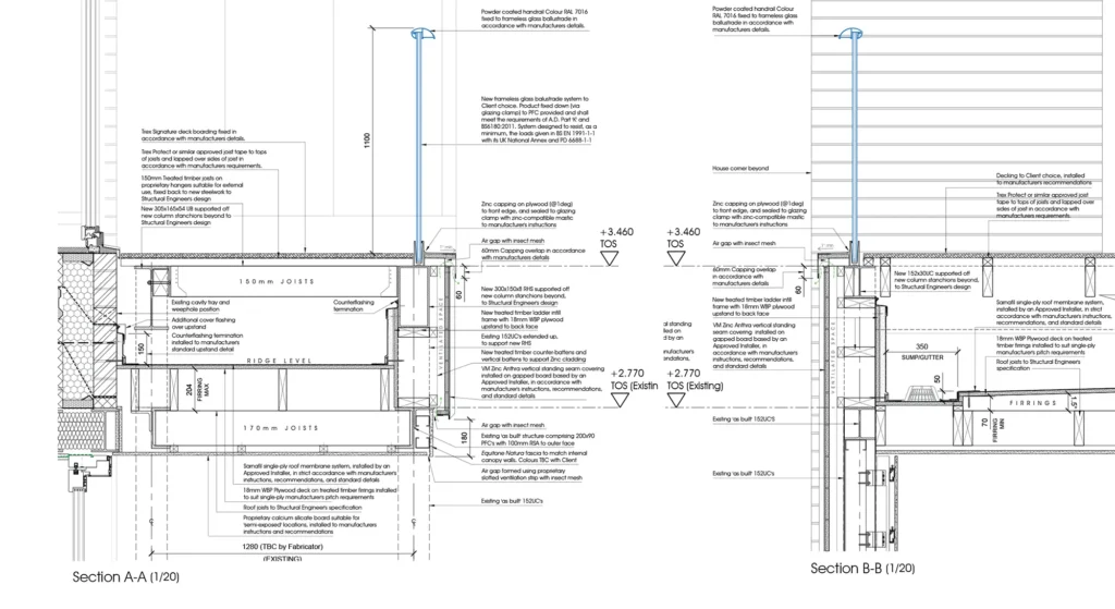 For clients wanting greater control of their project delivery, we can prepare enhanced large-scale details to supplement the Building Regulations package. These provide additional clarity and definition to certain design aspects, reducing onsite risk, maintaining quality, and ensuring the design intent is achieved.